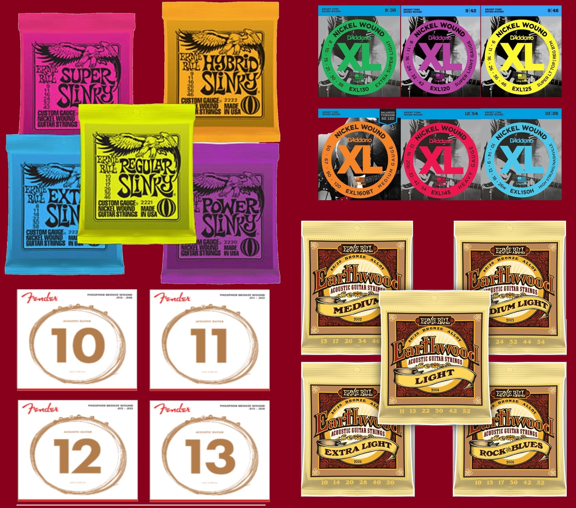 ~ Ernie Ball Slinkys, D'ddario XL, Fender 80/20 & Earthwood 80/20
